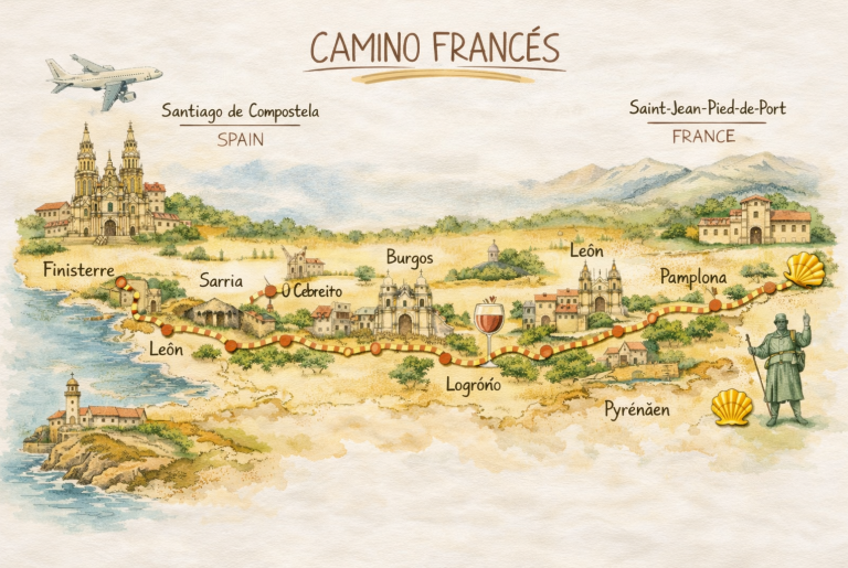 Der Weg verläuft durch kleine Orte, Weinlandschaften und historische Städte. Er gilt als etwas ruhiger als der Camino Francés und eignet sich gut für Pilger, die Gemeinschaft suchen, aber weniger Andrang möchten.